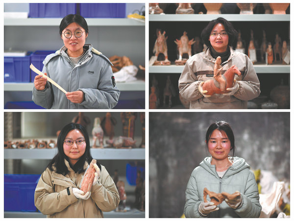 Hunching over with shovel in hand, 30-year-old Zhu Yingpei is at work in a newly excavated tomb in Xianyang in Northwest China's Shaanxi province. She is accompanied by a group of female archaeologists.